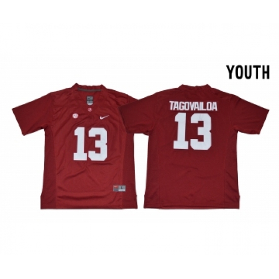 >Alabama Crimson Tide 13 Tua Tagovailoa Red Youth With Diamond Logo College Football Jersey