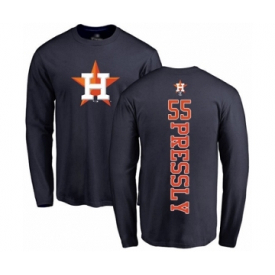 Baseball Houston Astros #55 Ryan Pressly Navy Blue Backer Long Sleeve T-Shirt