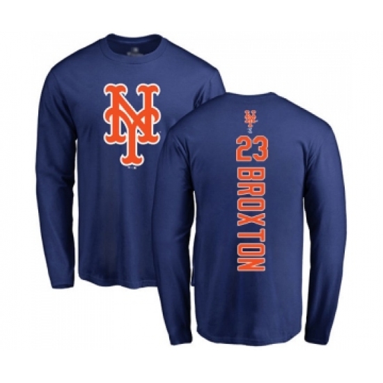 >Baseball New York Mets #23 Keon Broxton Royal Blue Backer Long Sleeve T-Shirt