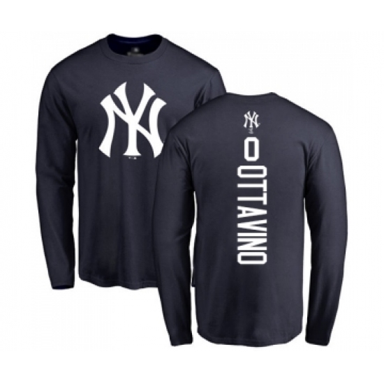 Baseball New York Yankees #0 Adam Ottavino Navy Blue Backer Long Sleeve T-Shirt