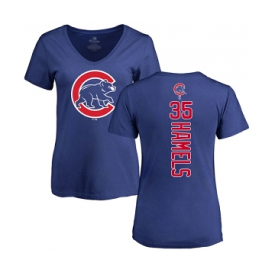 >Baseball Women's Chicago Cubs #35 Cole Hamels Royal Blue Backer T-Shirt