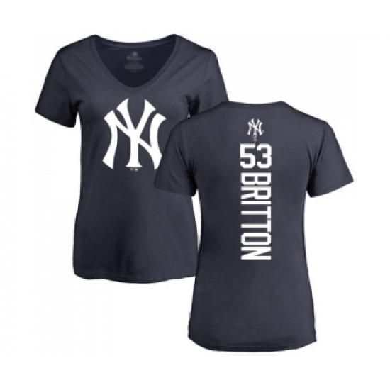 >Baseball Women's New York Yankees #53 Zach Britton Navy Blue Backer T-Shirt