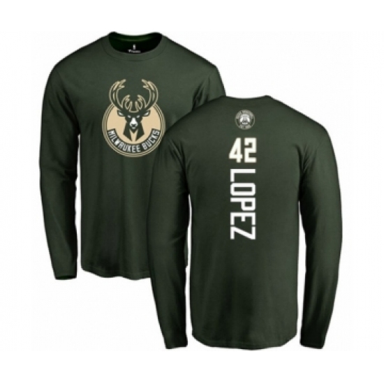 >Basketball Milwaukee Bucks #42 Robin Lopez Green Backer Long Sleeve T-Shirt