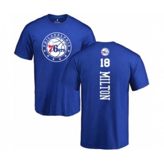 >Basketball Philadelphia 76ers #18 Shake Milton Royal Blue Backer T-Shirt