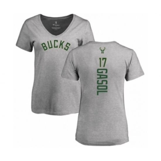 >Basketball Women's Milwaukee Bucks #17 Pau Gasol Ash Backer T-Shirt