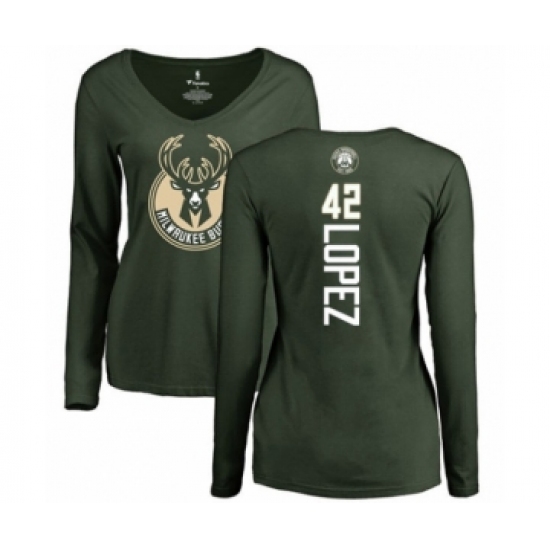 >Basketball Women's Milwaukee Bucks #42 Robin Lopez Green Backer Long Sleeve T-Shirt