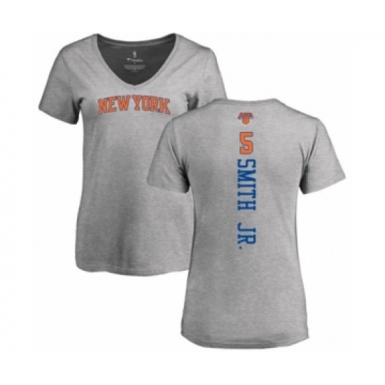 >Basketball Women's New York Knicks #5 Dennis Smith Jr. Ash Backer T-Shirt