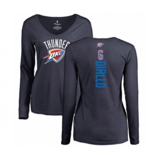 >Basketball Women's Oklahoma City Thunder #6 Hamidou Diallo Navy Blue Backer Long Sleeve T-Shirt