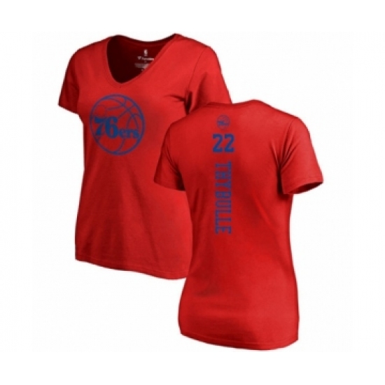 >Basketball Women's Philadelphia 76ers #22 Mattise Thybulle Red One Color Backer Slim-Fit V-Neck T-Shirt