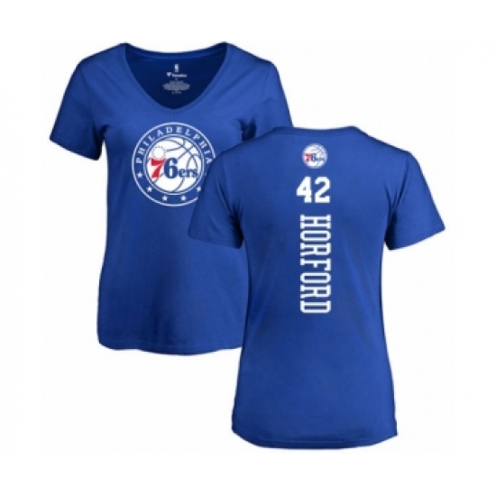 >Basketball Women's Philadelphia 76ers #42 Al Horford Royal Blue Backer T-Shirt