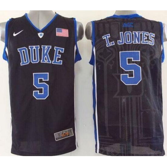 >Blue Devils #5 Tyus Jones Black Basketball Stitched NCAA Jersey