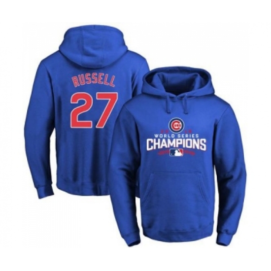 >Cubs #27 Addison Russell Blue 2016 World Series Champions Pullover MLB Hoodie