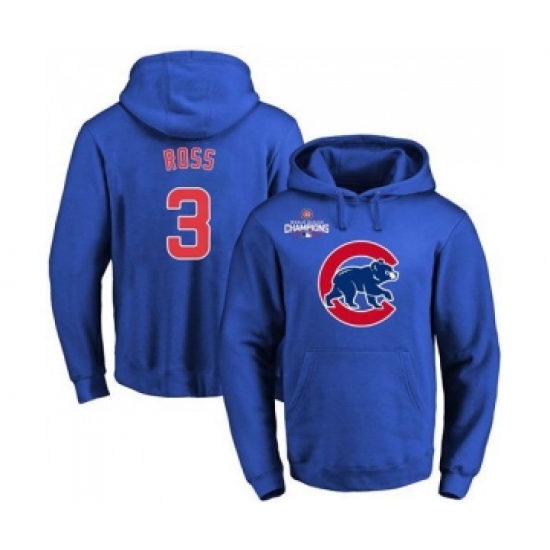 >Cubs #3 David Ross Blue 2016 World Series Champions Primary Logo Pullover MLB Hoodie