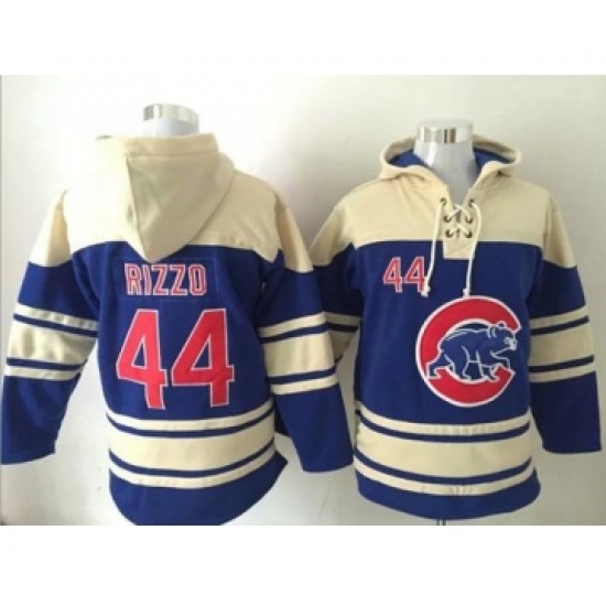 >Cubs #44 Anthony Rizzo Blue Sawyer Hooded Sweatshirt MLB Hoodie