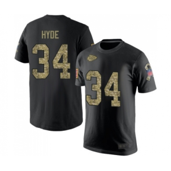 Football Men's Kansas City Chiefs #34 Carlos Hyde Black Camo Salute to Service T-Shirt