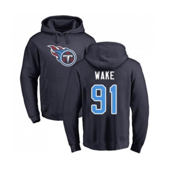 >Football Tennessee Titans #91 Cameron Wake Navy Blue Name & Number Logo Pullover Hoodie