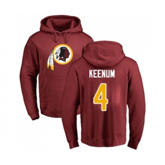 >Football Washington Redskins #4 Case Keenum Maroon Name & Number Logo Pullover Hoodie
