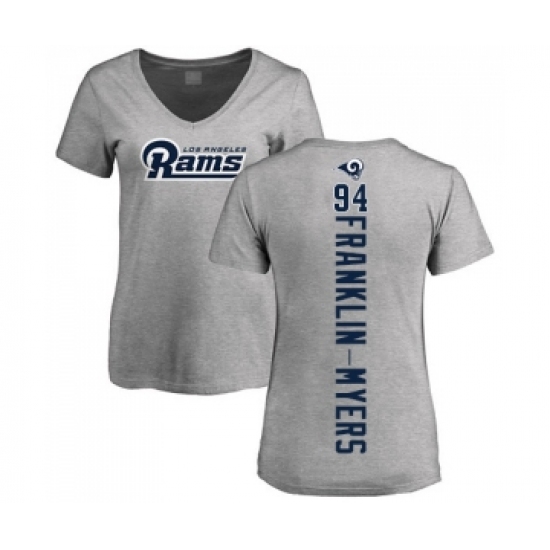>Football Women's Los Angeles Rams #94 John Franklin-Myers Ash Backer V-Neck T-Shirt