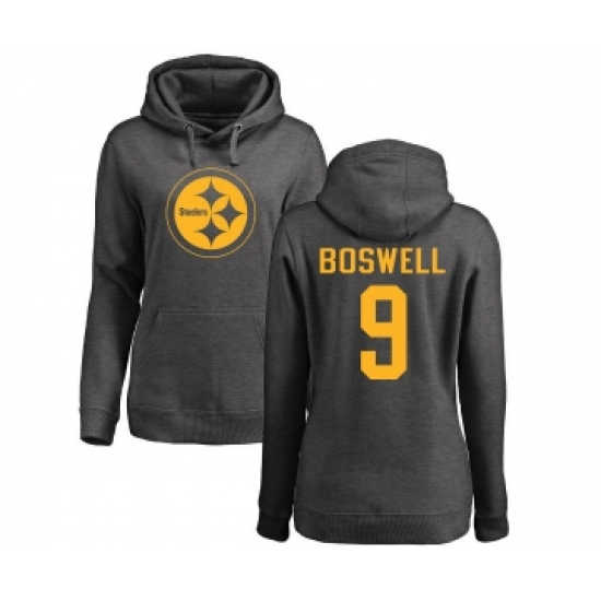 >Football Women's Pittsburgh Steelers #9 Chris Boswell Ash One Color Pullover Hoodie