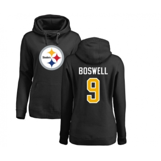 >Football Women's Pittsburgh Steelers #9 Chris Boswell Black Name & Number Logo Pullover Hoodie