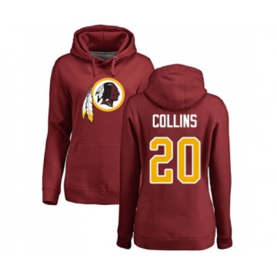 >Football Women's Washington Redskins #20 Landon Collins Maroon Name & Number Logo Pullover Hoodie