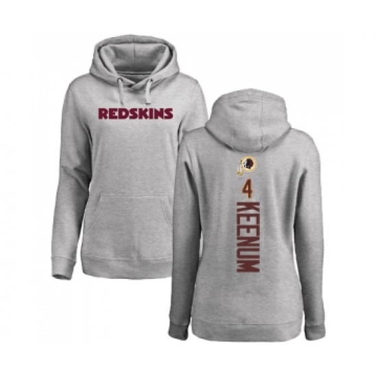 Football Women's Washington Redskins #4 Case Keenum Ash Backer Pullover Hoodie