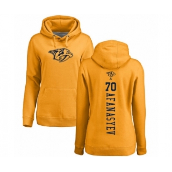 >Hockey Women's Nashville Predators #70 Egor Afanasyev Gold One Color Backer Pullover Hoodie