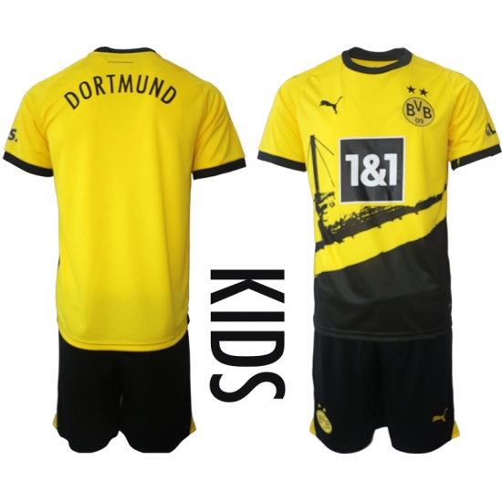 Kids Dortmund Blank 2023-24 Yellow Black Home Soccer Jersey