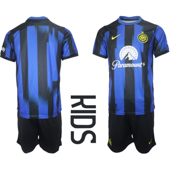 >Kids Inter Milan Blue Black Stripe 2023-24 Home Soccer Jersey