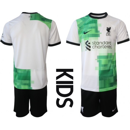 Kids Liverpool Blank 2023-24 White Green Away Soccer Jersey