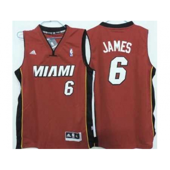 Youth NBA Miami Heat #6 LeBron James Red Stitched Jersey