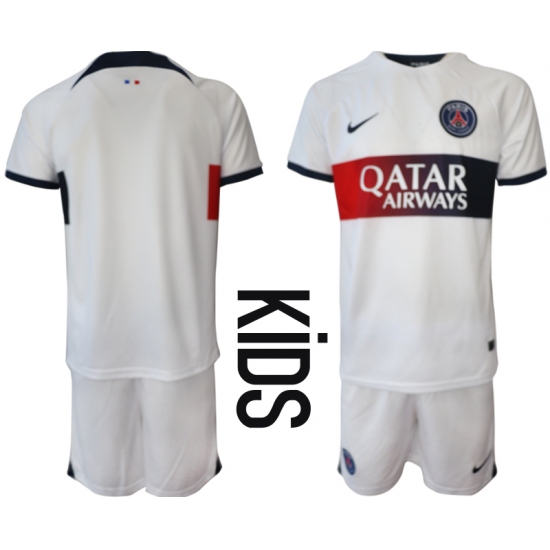 Kids Paris St Germain Blank White 2023-24 Away Soccer Jersey