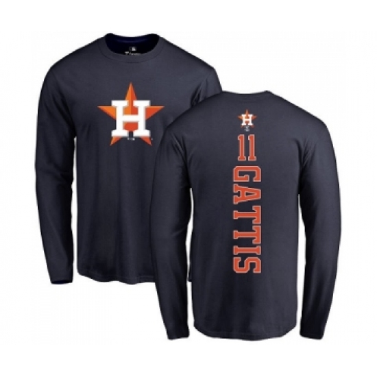 MLB Nike Houston Astros #11 Evan Gattis Navy Blue Backer Long Sleeve T-Shirt