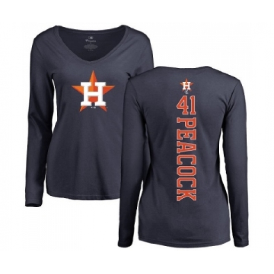 >MLB Women's Nike Houston Astros #41 Brad Peacock Navy Blue Backer Long Sleeve T-Shirt
