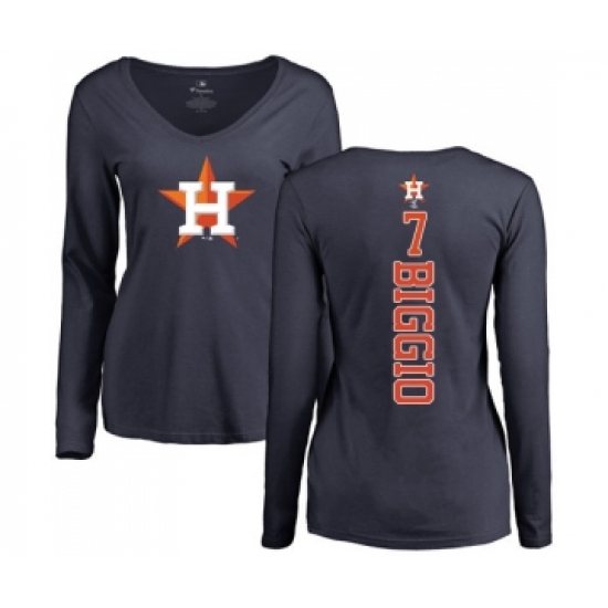 >MLB Women's Nike Houston Astros #7 Craig Biggio Navy Blue Backer Long Sleeve T-Shirt