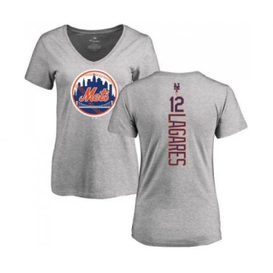 MLB Women's Nike New York Mets #12 Juan Lagares Ash Backer T-Shirt