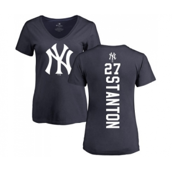>MLB Women's Nike New York Yankees #27 Giancarlo Stanton Navy Blue Backer T-Shirt