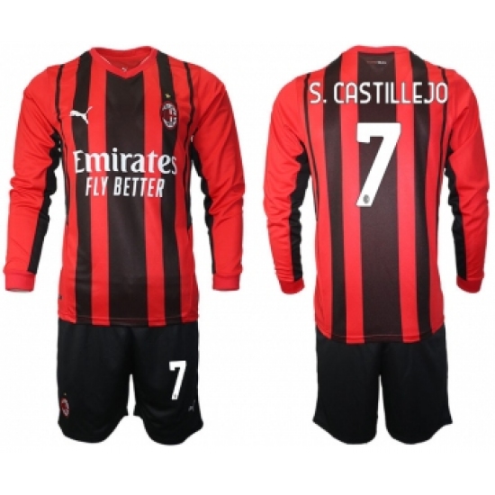 >Men 2021-2022 Club Ac Milan home red Long Sleeve 7 Soccer Jerseys