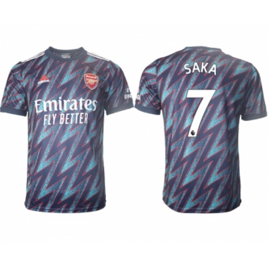 >Men 2021-2022 Club Arsenal Second away aaa version blue 7 Soccer Jersey