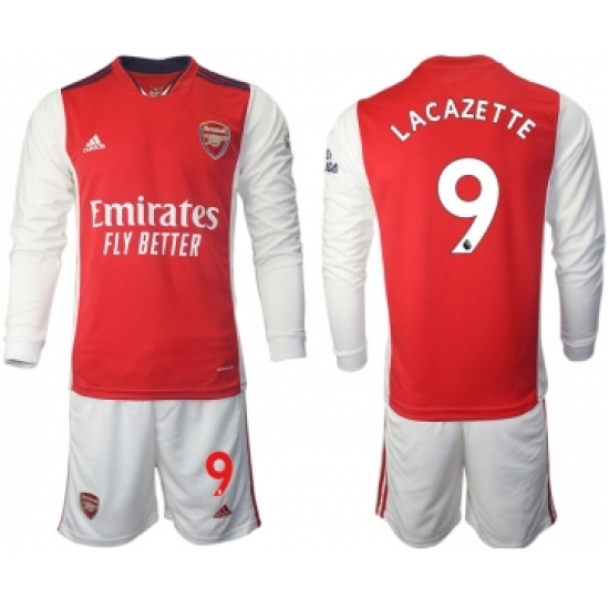 >Men 2021-2022 Club Arsenal home red Long Sleeve 9 Soccer Jersey