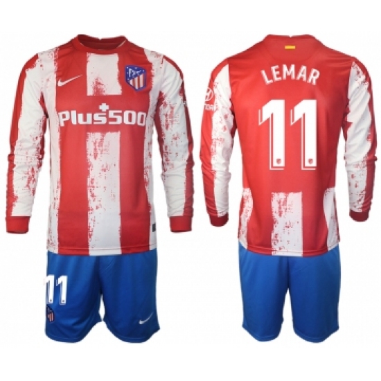 >Men 2021-2022 Club Atletico Madrid home red Long Sleeve 11 Soccer Jersey