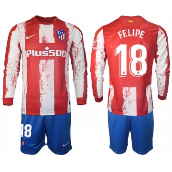 >Men 2021-2022 Club Atletico Madrid home red Long Sleeve 18 Soccer Jersey