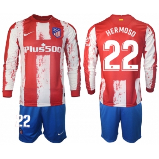 >Men 2021-2022 Club Atletico Madrid home red Long Sleeve 22 Soccer Jersey