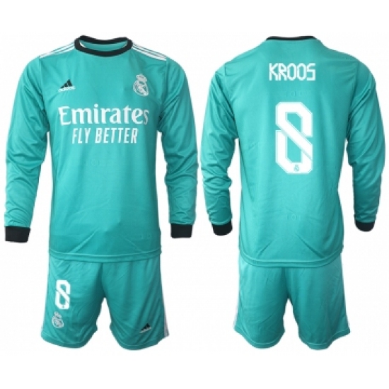 >Men 2021-2022 Club Atletico Madrid second away blue Long Sleeve 8 Soccer Jersey