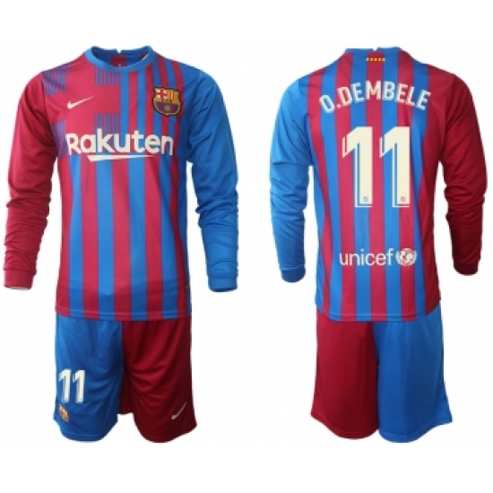 Men 2021-2022 Club Barcelona home red blue Long Sleeve 11 Nike Soccer Jersey