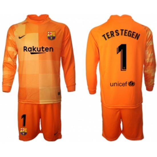Men 2021-2022 Club Barcelona orange red goalkeeper Long Sleeve 1 Soccer Jersey