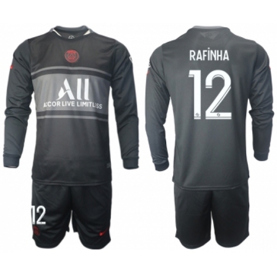 >Men 2021-2022 Club Paris St German Second away black Long Sleeve 21 Soccer Jersey