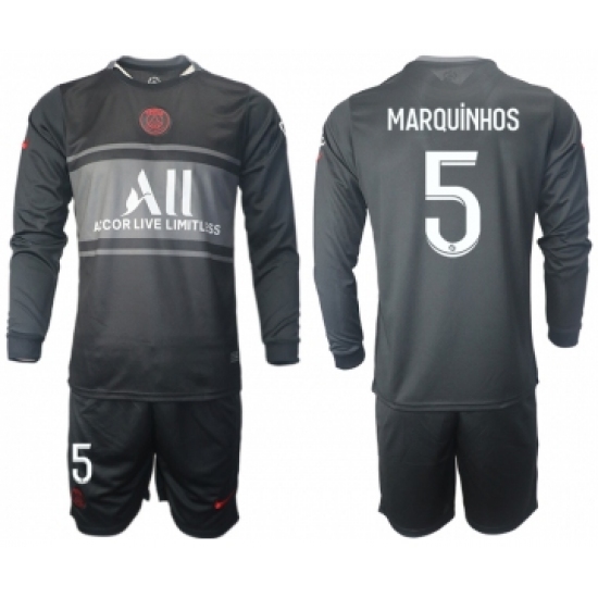 >Men 2021-2022 Club Paris St German Second away black Long Sleeve 5 Soccer Jersey