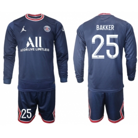 >Men 2021-2022 Club Paris St German home blue Long Sleeve 25 Soccer Jersey
