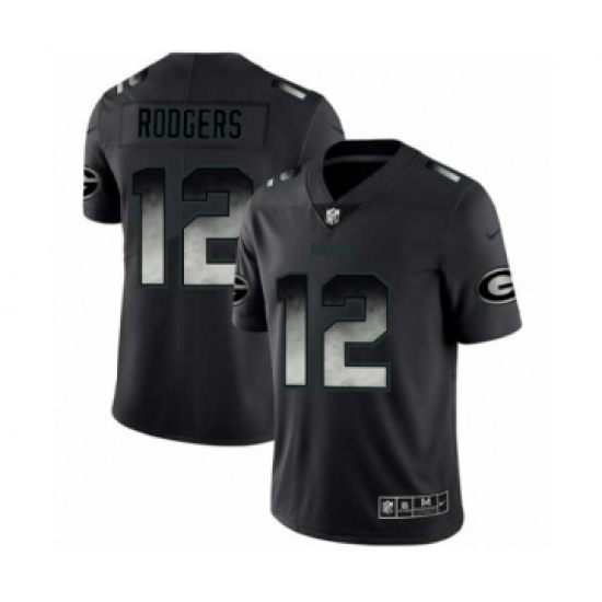 Men Green Bay Packers #12 Aaron Rodgers Black Smoke Fashion Limited Jersey